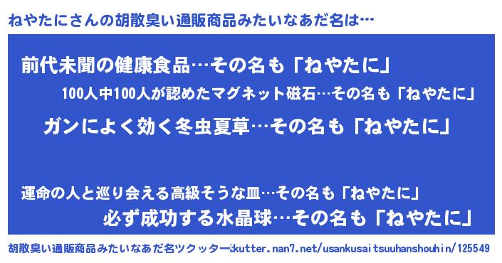 | 意味不明あだ名 | 『自称ねやたに』『永久保存ねやたに』 |