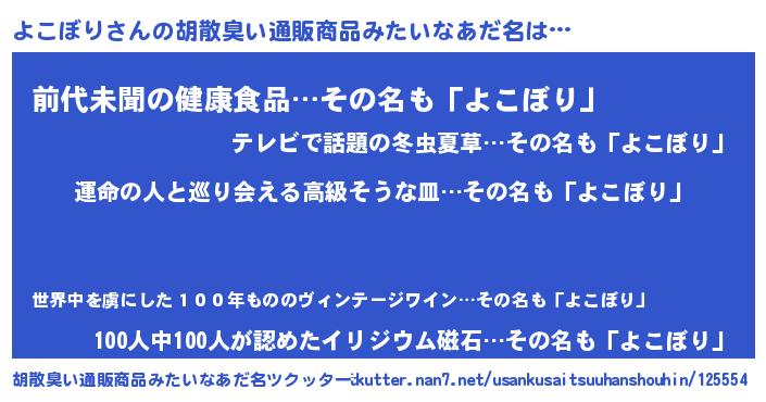 | 意味不明あだ名 | 『よこぼりフォーエバー』『自称よこぼり』 |