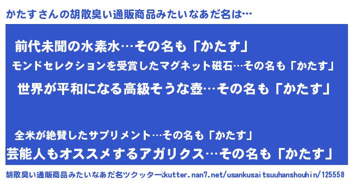 | ヒーロー風カッコイイあだ名 | 『ウルトラかたすマン』『ネオカタス』 |