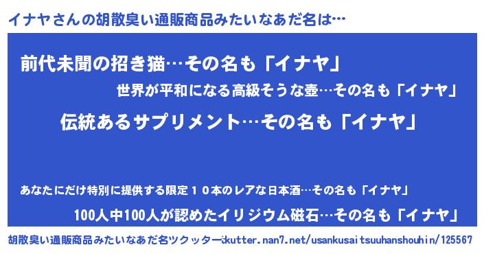 | 意味不明あだ名 | 『とにかく怪しいイナヤ』 |