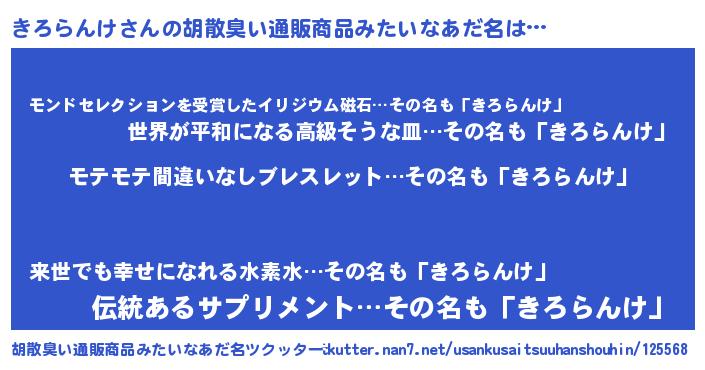 | 自動車の名前っぽいあだ名 | 『ランキロギーニ』『キロティマ』 |