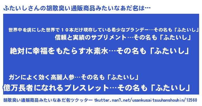 | 男性向けラノベタイトル風あだ名 | 『ふたいしという概念が存在しない退屈な世界 』 |