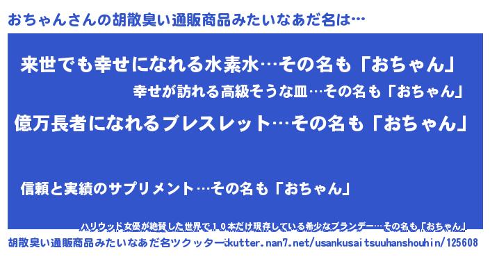 | 意味不明あだ名 | 『ペロリンおちゃん』『永久保存おちゃん』 |