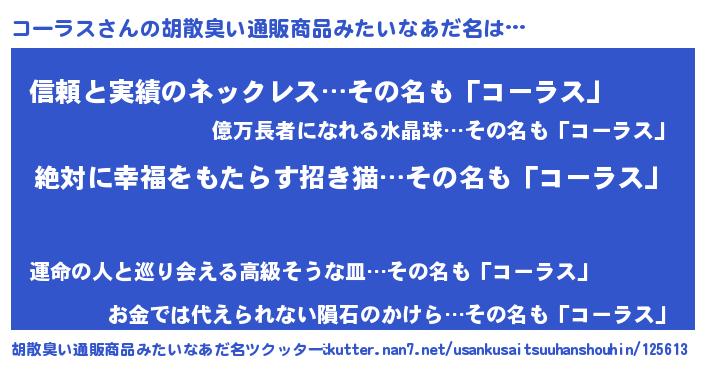 | ヘコむあだ名 | 『コーラス(笑)』『コーっ子』 |