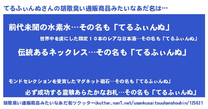 | 意味不明あだ名 | 『とにかく怪しいてるふぃんぬ』 |