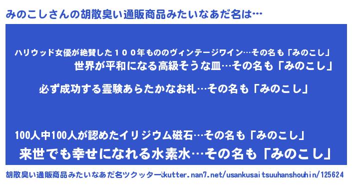 | ヘコむあだ名 | 『みのもー』『みのこし(小並感)』 |