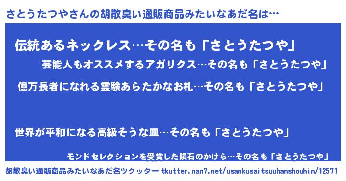 | ポケモン風あだ名 | 『サトチュウ』『ヒサトウタツヤ』 |