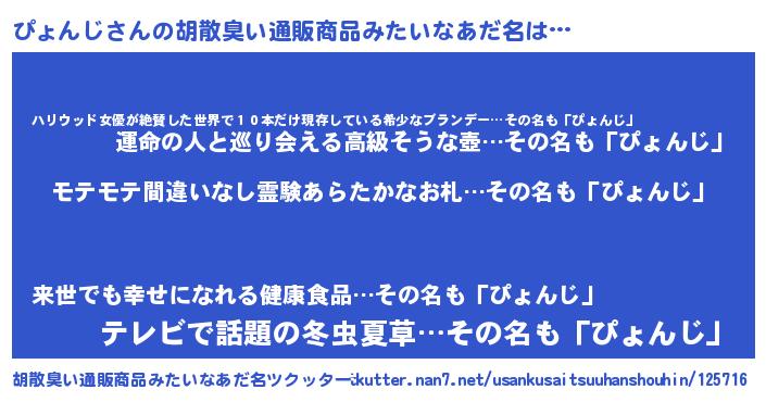 意味不明あだ名 | 『ペロリンぴょんじ』『自称ぴょんじ』 |