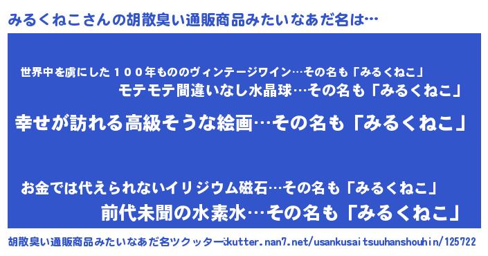 | 意味不明あだ名 | 『みるくねこフォーエバー』 |