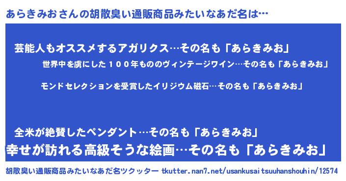 | ヒーロー風カッコイイあだ名 | 『慈愛の使者あらきみお』『仮面アラダー』 |