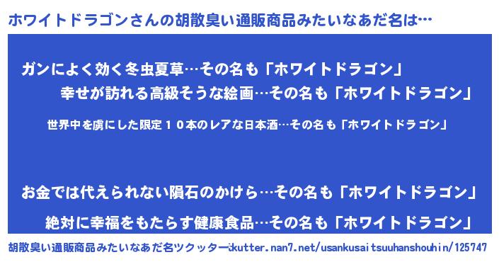 | 意味不明あだ名 | 『住所不定無職ホワイトドラゴン(50歳)』 |