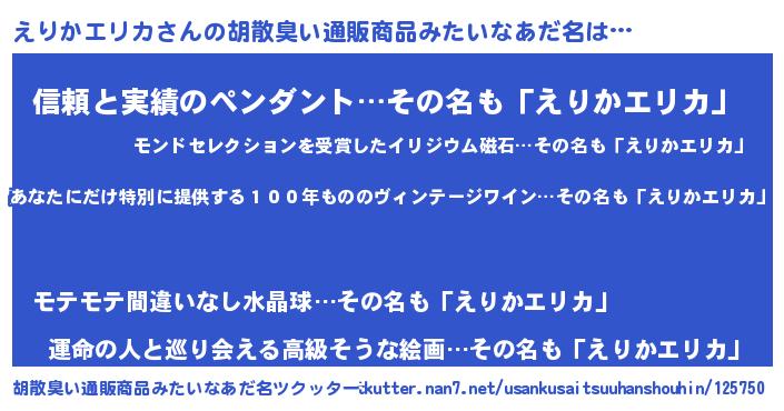| 男性向けラノベタイトル風あだ名 | 『この素晴らしい世界にえりかエリカを!』 |