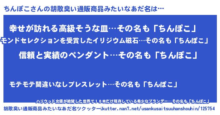 | 意味不明あだ名 | 『とにかく怪しいちんぽこ』 |