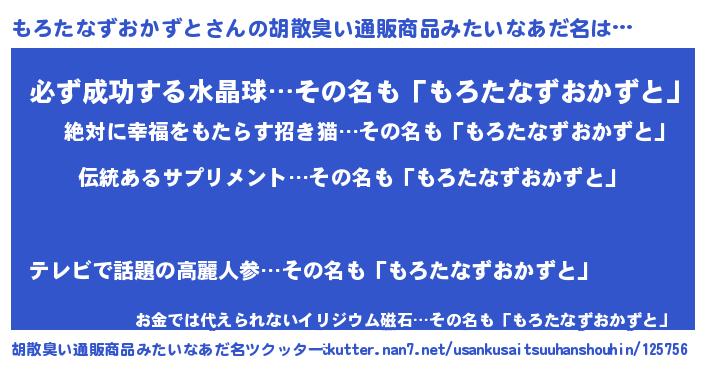 | 意味不明あだ名 | 『とにかく怪しいもろたなずおかずと』 |