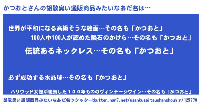 | ヘコむあだ名 | 『かつっ子』『なまこ酢』『かつにー』 |