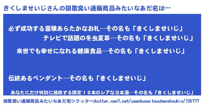 | ヘコむあだ名 | 『きくしませいじ(笑)』『きくもー』 |