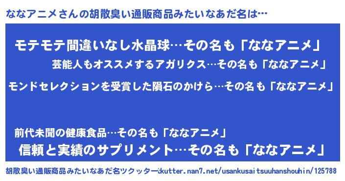 | 男性向けラノベタイトル風あだ名 | 『ノーゲーム・ノーナナアニメ』 |