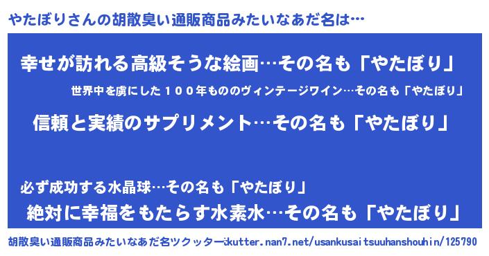 | 意味不明あだ名 | 『とにかく怪しいやたぼり』 |