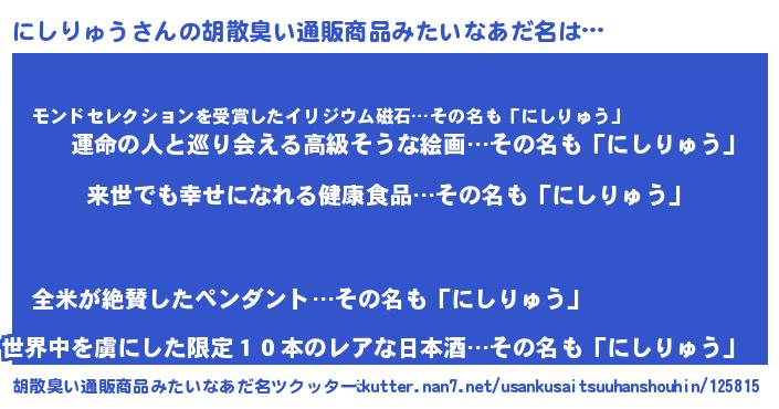 | 意味不明あだ名 | 『永久保存にしりゅう』 |