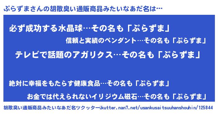 | 意味不明あだ名 | 『自称ぷらずま』『ペロリンぷらずま』 |