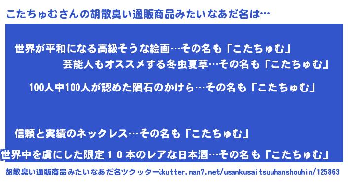 | ヒーロー風カッコイイあだ名 | 『友情の使者こたちゅむ』『仮面コタダー』 |