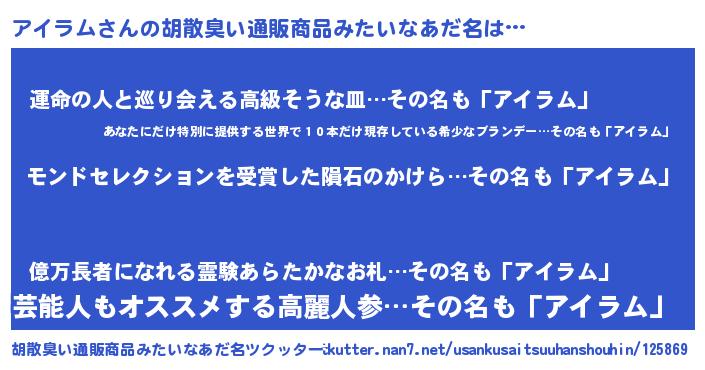 | 男性向けラノベタイトル風あだ名 | 『ノーゲーム・ノーアイラム』 |