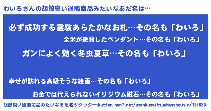 | 意味不明あだ名 | 『自称わいろ』『ペロリンわいろ』 |