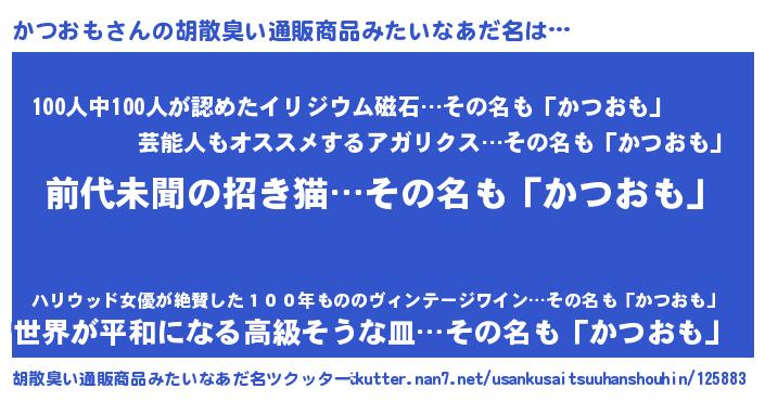 | 意味不明あだ名 | 『永久保存かつおも』『自称かつおも』 |