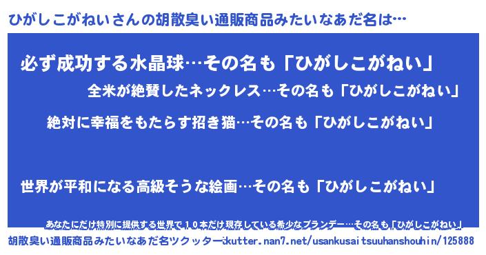 | ヘコむあだ名 | 『ひがしこがねい(笑)』『ひがにゅー』 |