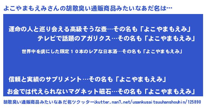 | 女子向けラノベタイトル風あだ名 | 『乙女ゲームの破滅フラグしかない悪役よこやまもえみに転生してしまった…』 |