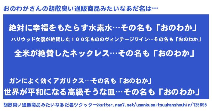 | ヘコむあだ名 | 『おのっぺ』『おのわか(苦笑)』 |