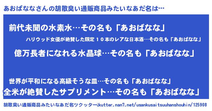 | ヘコむあだ名 | 『あおにゅー』『あおばなな(遠い目)』 |