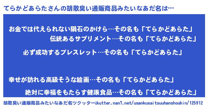 | ヘコむあだ名 | 『てらにー』『てらかどあらた(爆)』 |