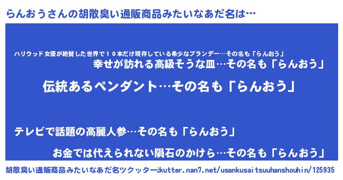 | ヘコむあだ名 | 『らんっぺ』『つくし』『らんにー』 |