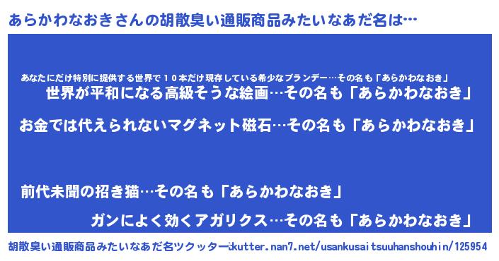 | 意味不明あだ名 | 『眠気覚ましガムあらかわなおき味』 |