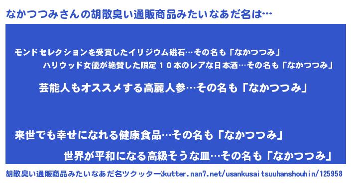 | ヘコむあだ名 | 『酢こんぶ』『なかつつみ(苦笑)』 |