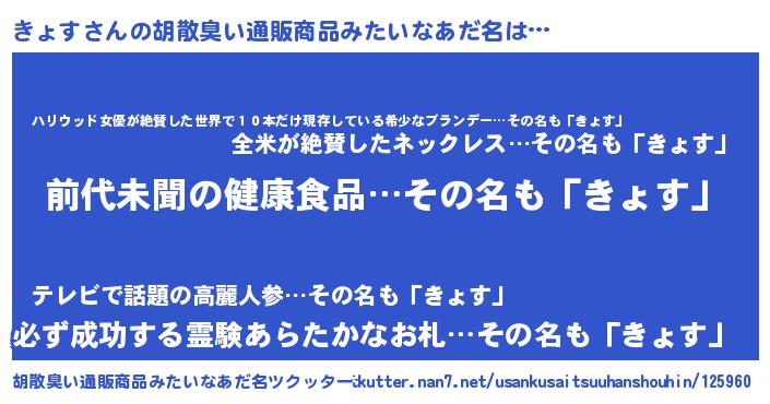 | 意味不明あだ名 | 『永久保存きょす』『ペロリンきょす』 |