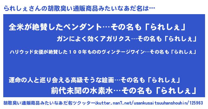 | ヘコむあだ名 | 『られを』『られしぇ(苦笑)』 |