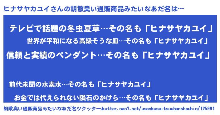 | ポケモン風あだ名 | 『ヒヒナサヤカユイ』『ヒナゴンZ』 |