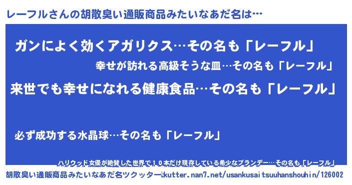 | 意味不明あだ名 | 『永久保存レーフル』『自称レーフル』 |