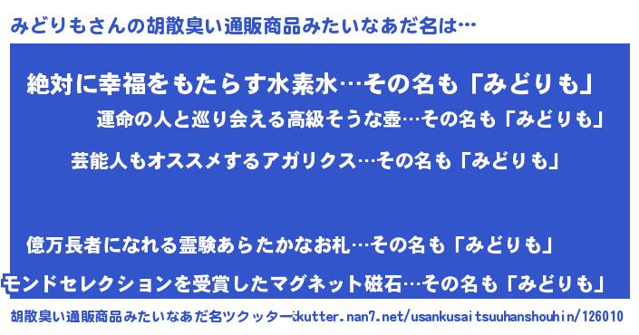 | 可愛いあだ名 | 『みどうちぇる』『みどりもママ』 |