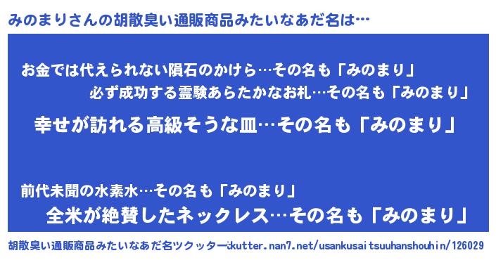 | ヘコむあだ名 | 『牛乳』『みのっぺ』『みのっふぃ~』 |