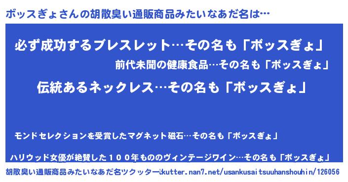 | ヘコむあだ名 | 『ボッっぺ』『ボッにー』『牛乳』 |