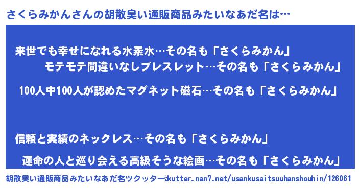 | 男性向けラノベタイトル風あだ名 | 『おまえをオタクにしてやるから、俺をさくらみかんにしてくれ! 』 |