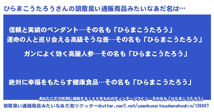 | 肩書あだ名 | 『ひらまこうたろう閣下』 |