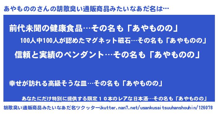 | 女子向けラノベタイトル風あだ名 | 『あやもののは平凡を望む』 |