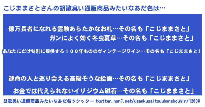 | 意味不明あだ名 | 『ヨモギ科こじままさと属』 |