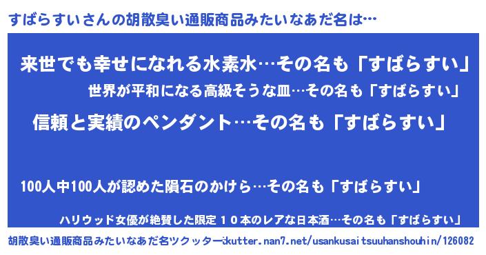 | 意味不明あだ名 | 『とにかく怪しいすばらすい』 |