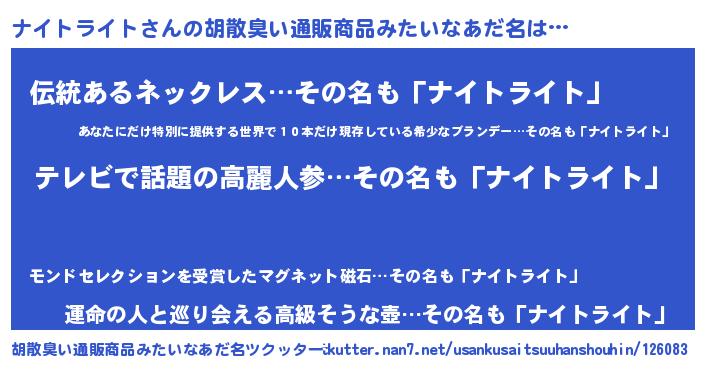 | 意味不明あだ名 | 『自称ナイトライト』 |