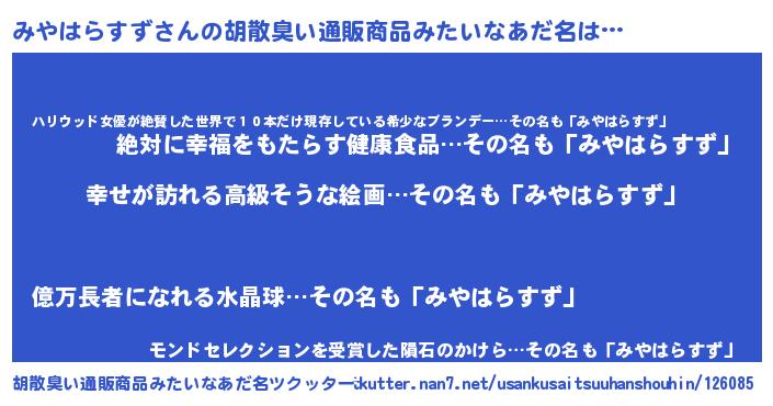 | ヘコむあだ名 | 『牛乳』『みやはらすず(震え声)』 |